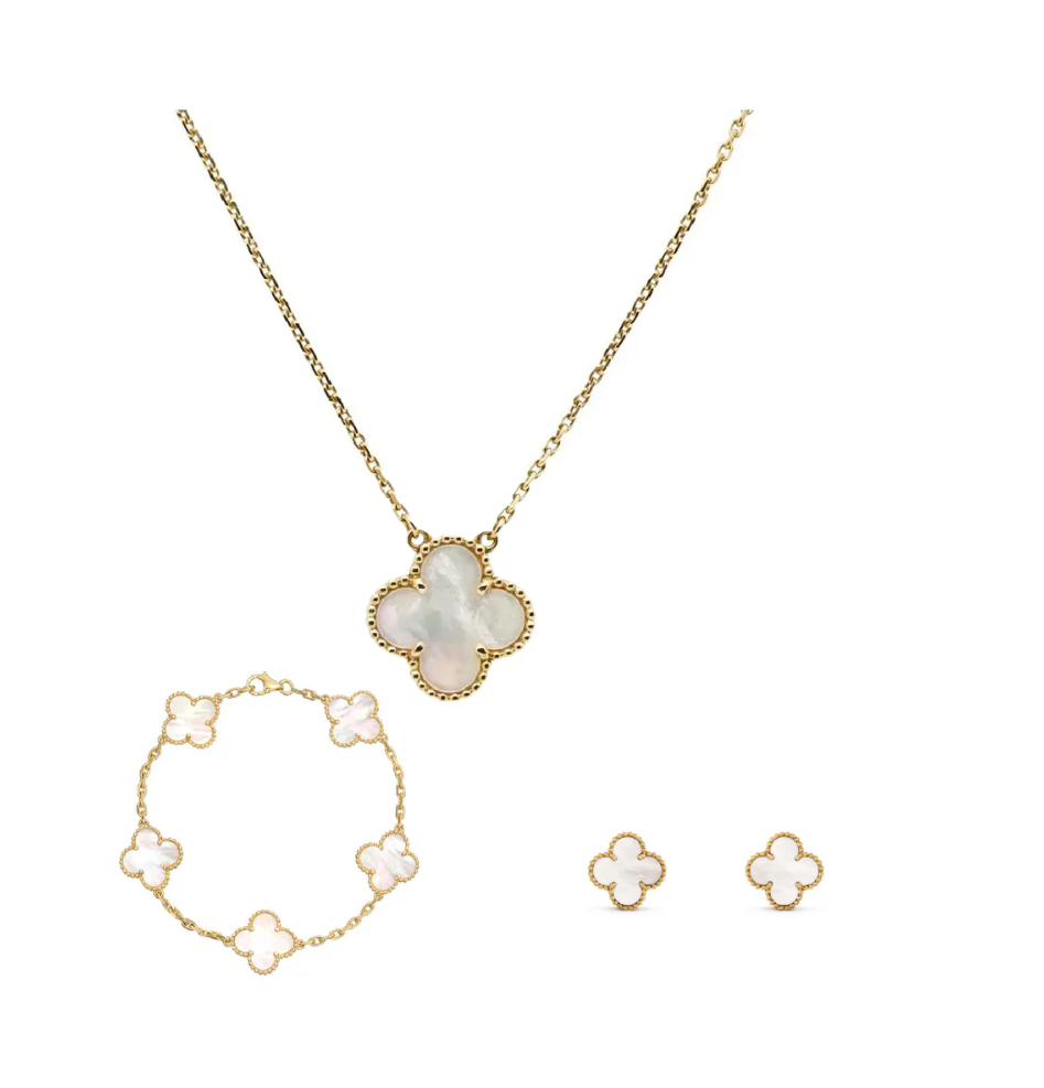 Set Flori White Suflate cu Aur 14K